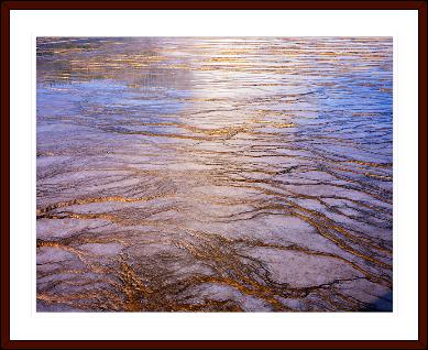 patterns, coupled with reflections of sky and geyser